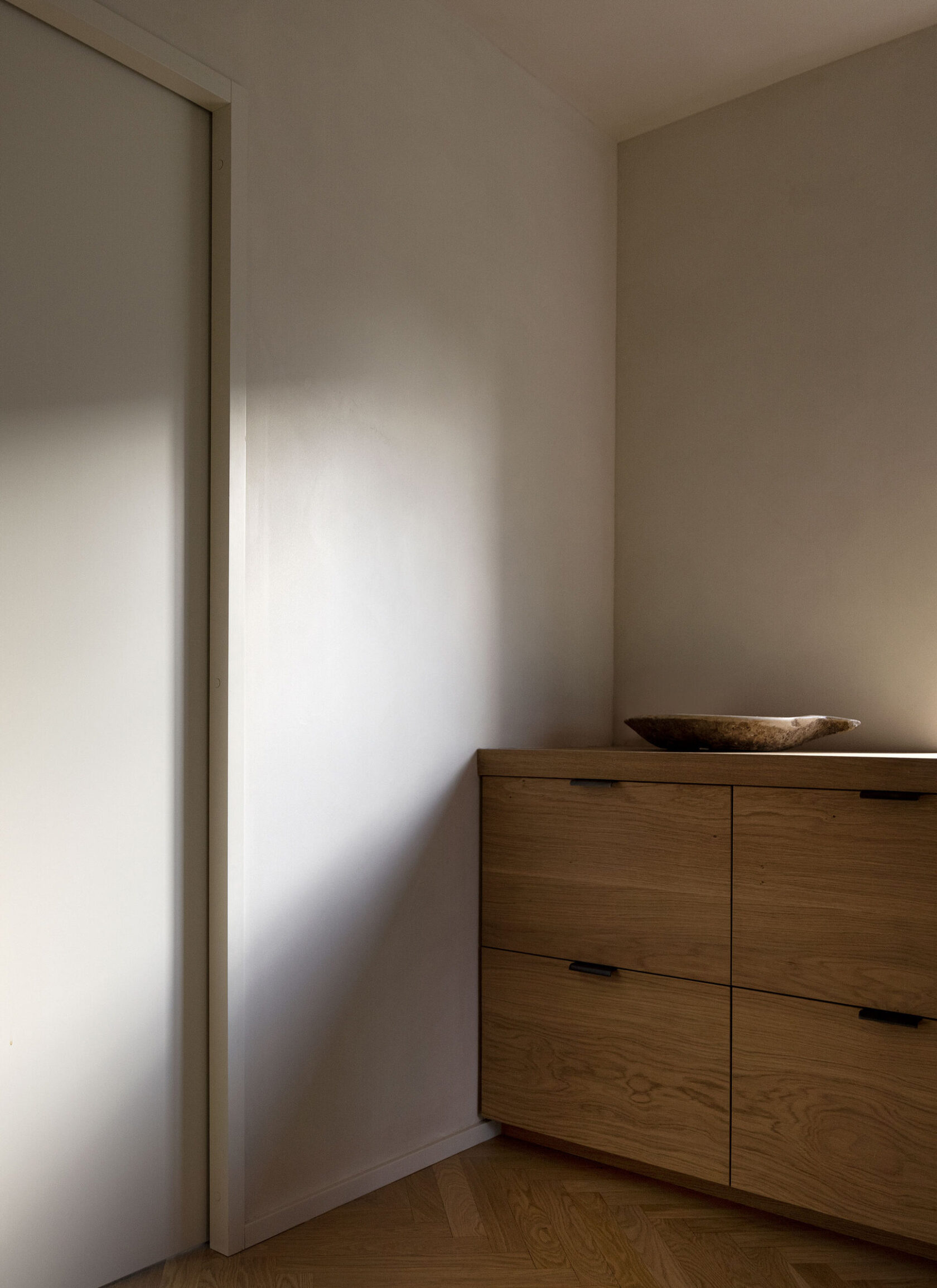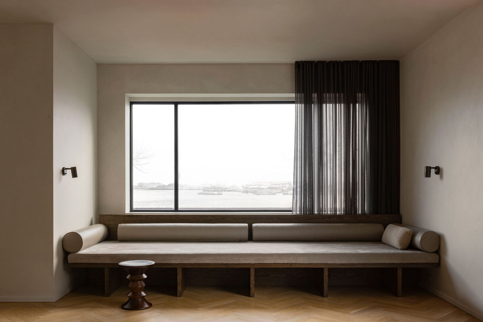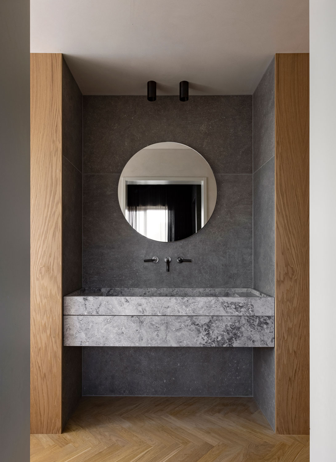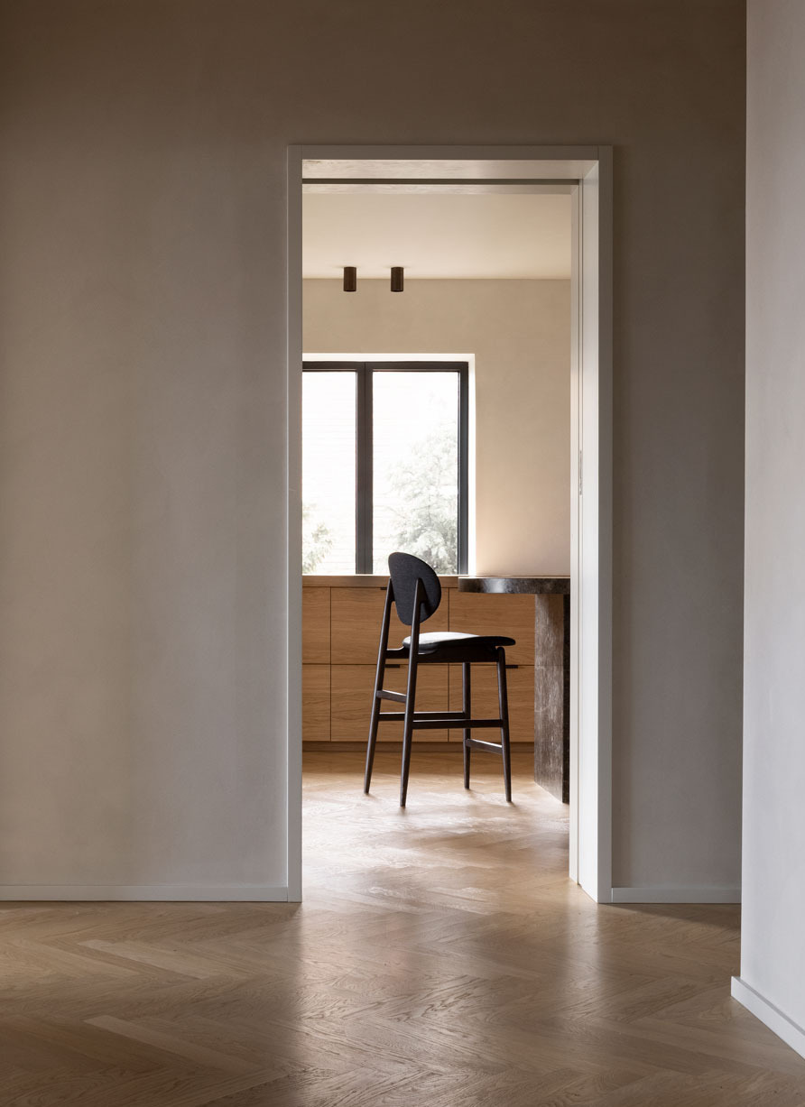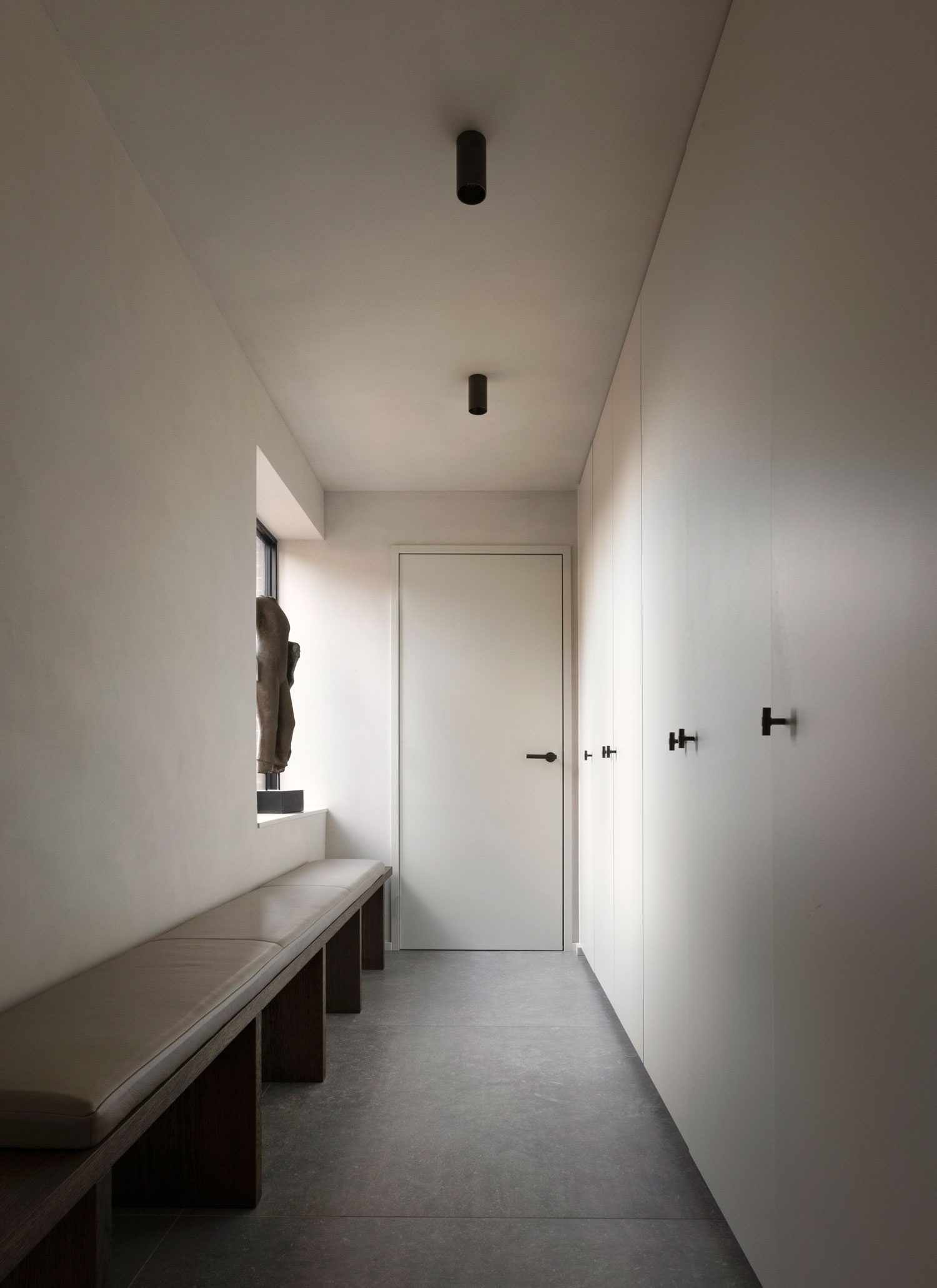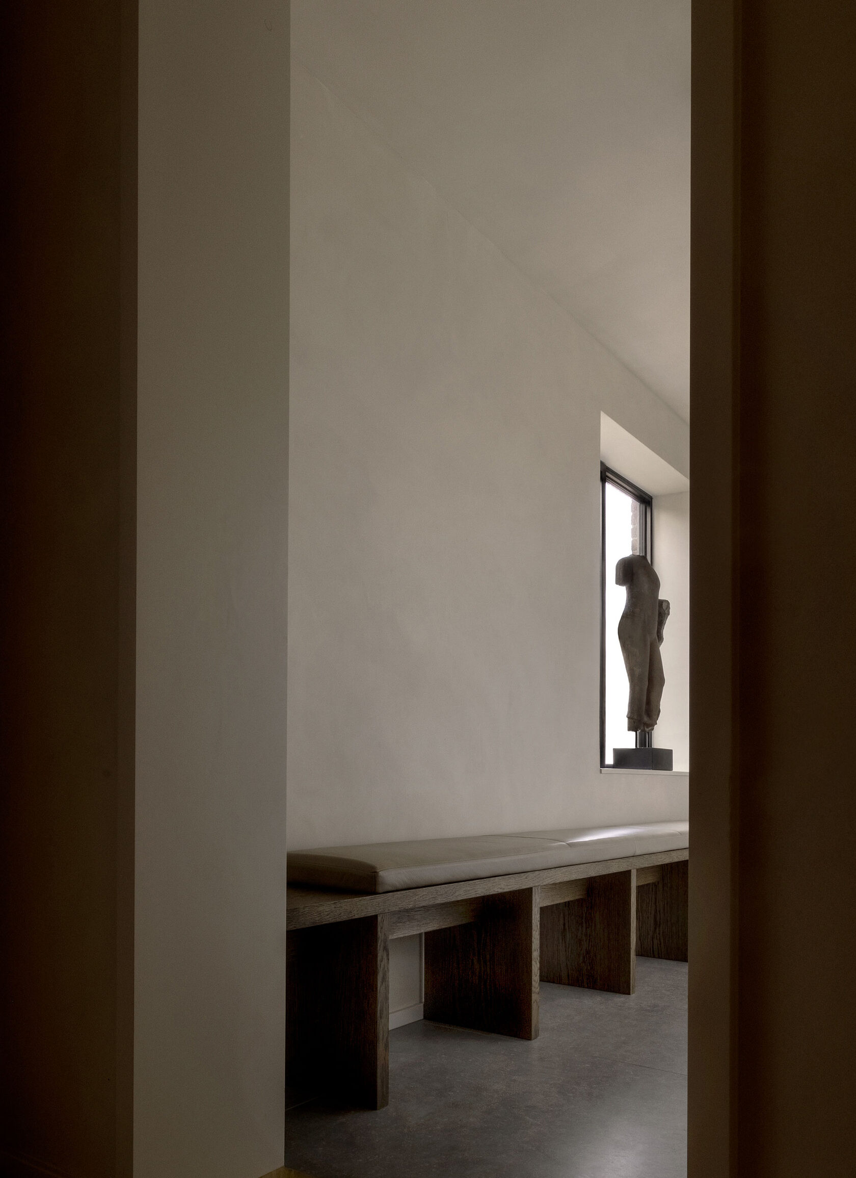 Чтобы добиться целостности пространства, некоторые элементы интерьера были выполнены на заказ — с осознанием того, что универсальных решений не существует. Эти индивидуально созданные композиции долговечны: они не только служат своей функции, но и учитывают контекст, органично вплетаясь в архитектуру, благодаря чему приобретают выразительность и придают особую ценность окружению.