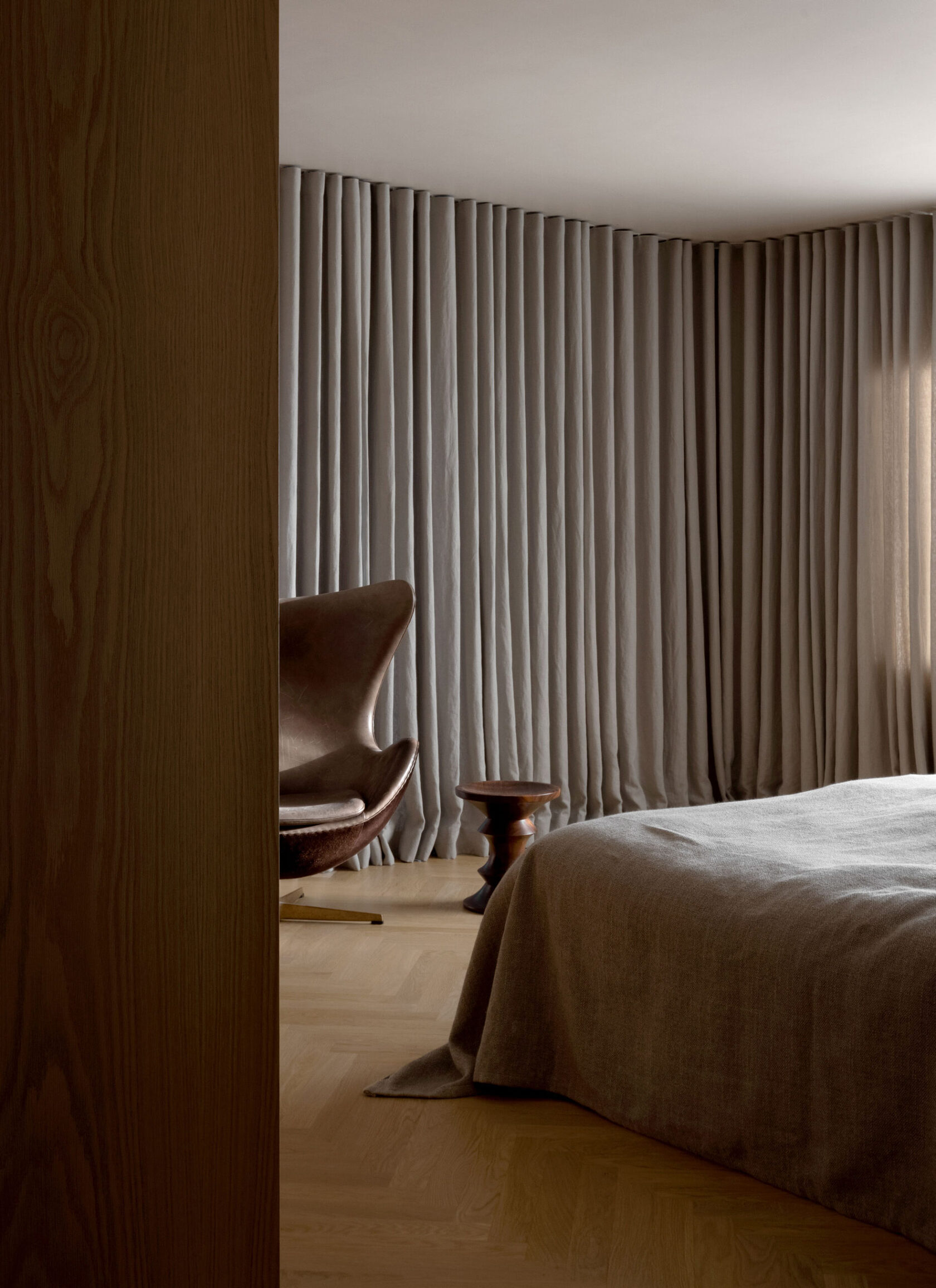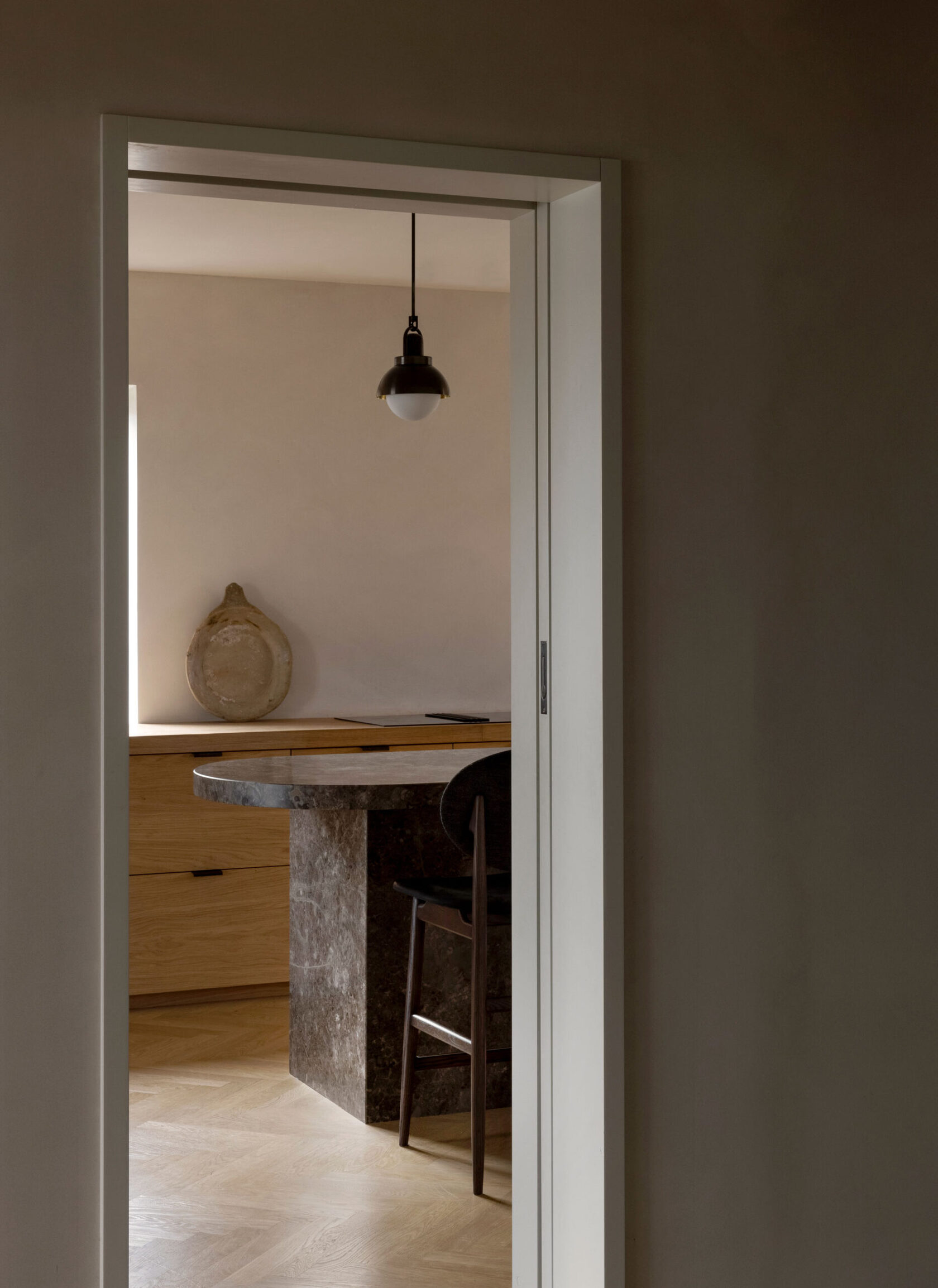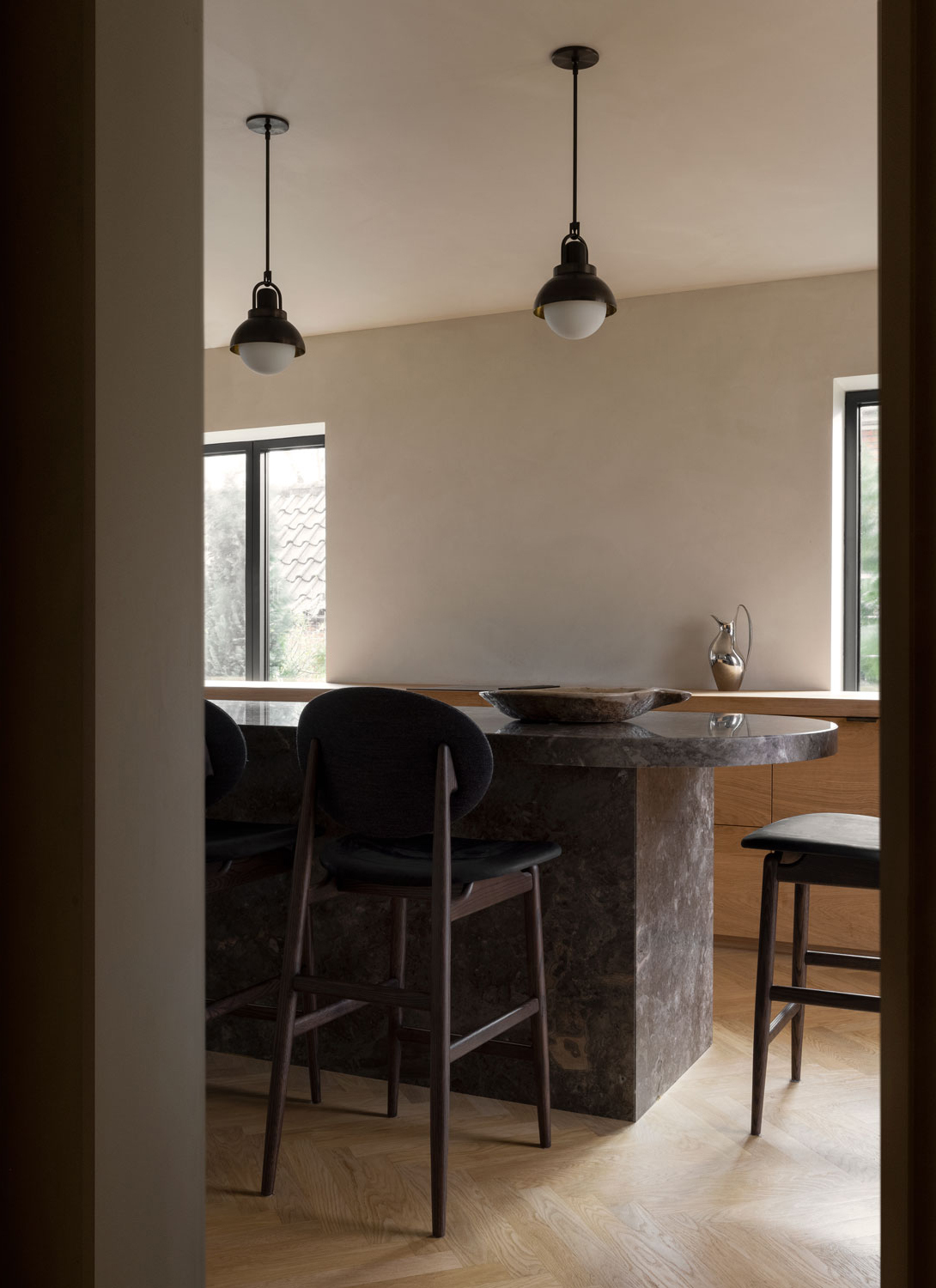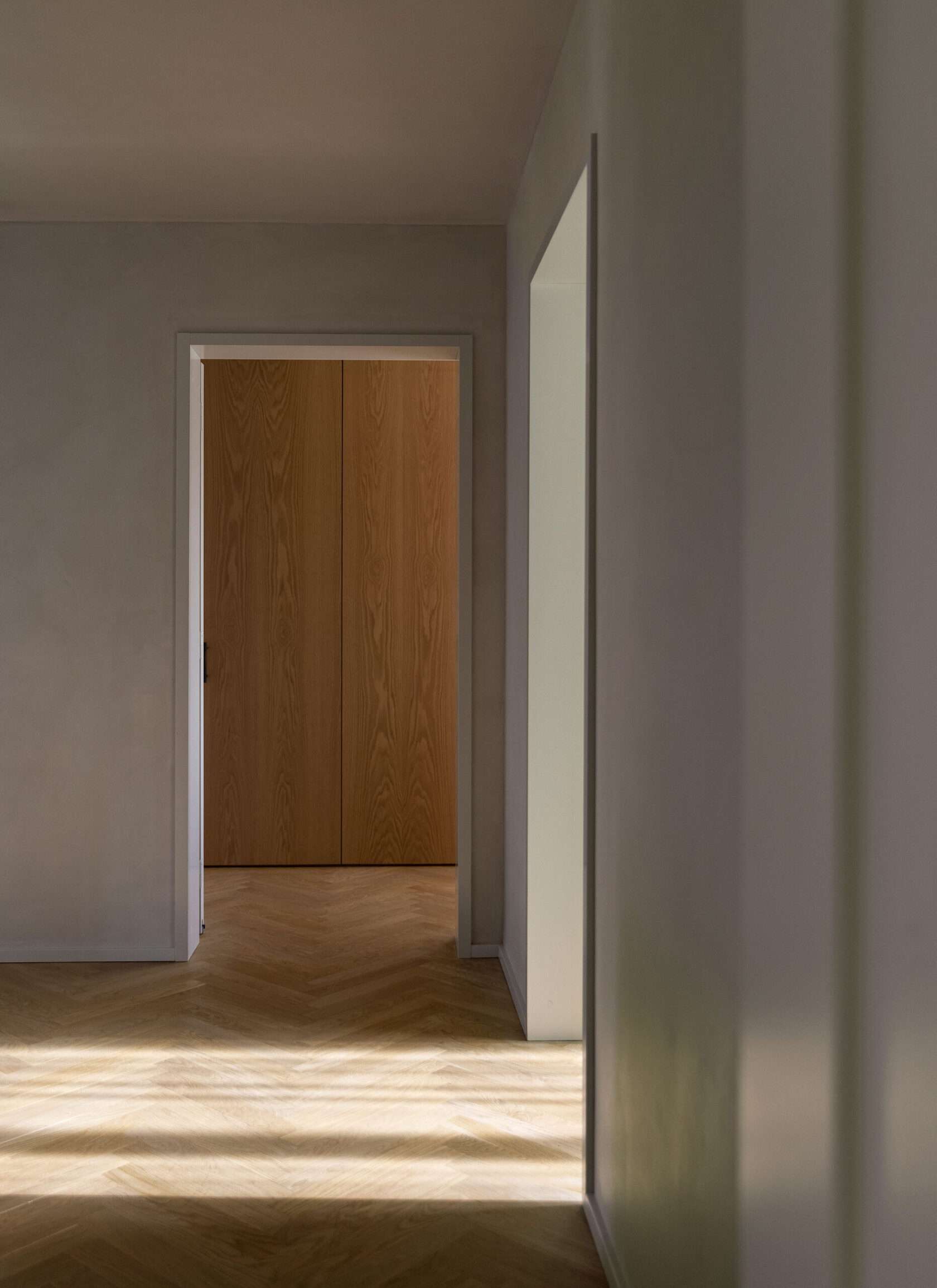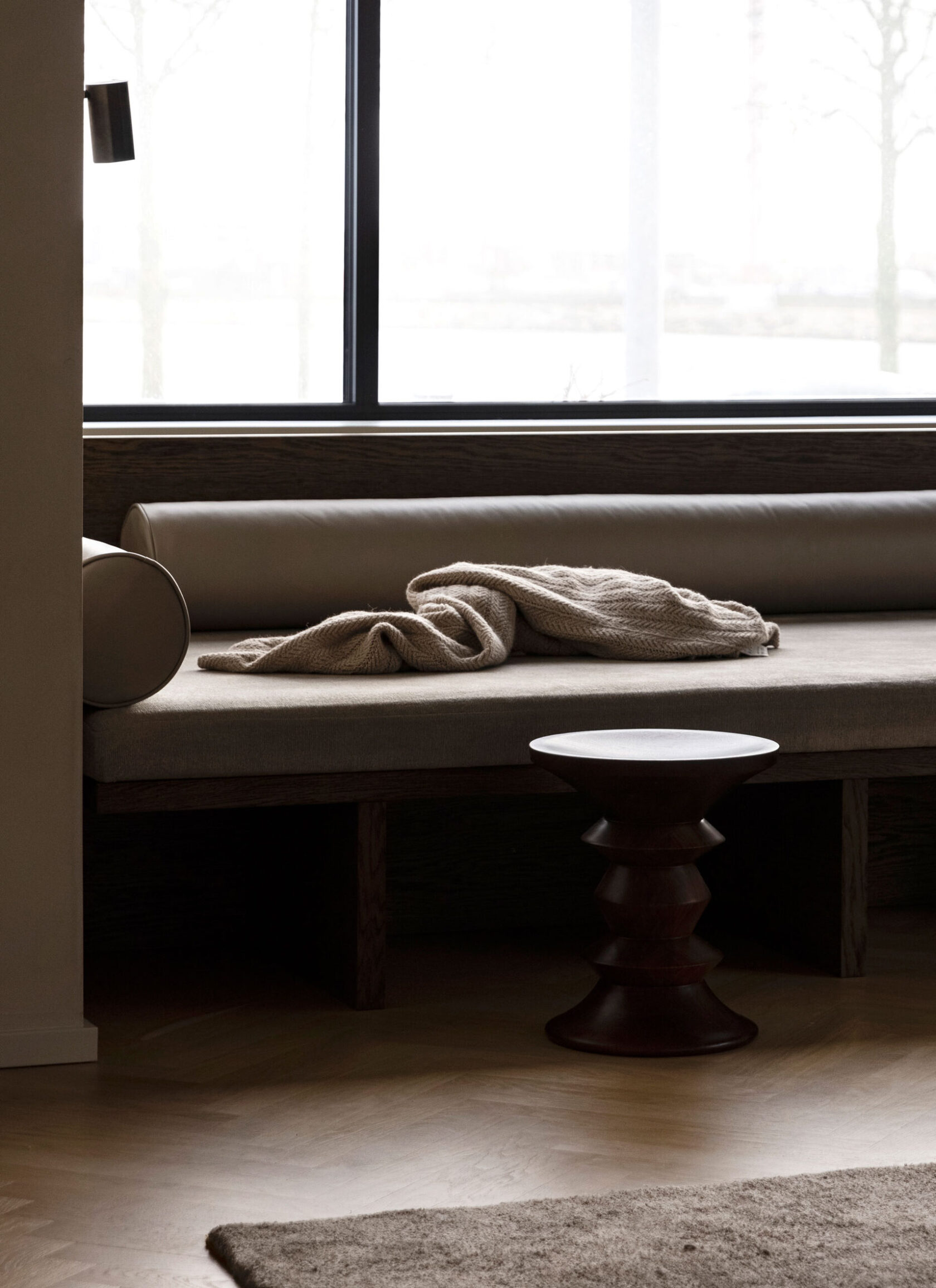 Чтобы добиться целостности пространства, некоторые элементы интерьера были выполнены на заказ — с осознанием того, что универсальных решений не существует. Эти индивидуально созданные композиции долговечны: они не только служат своей функции, но и учитывают контекст, органично вплетаясь в архитектуру, благодаря чему приобретают выразительность и придают особую ценность окружению.