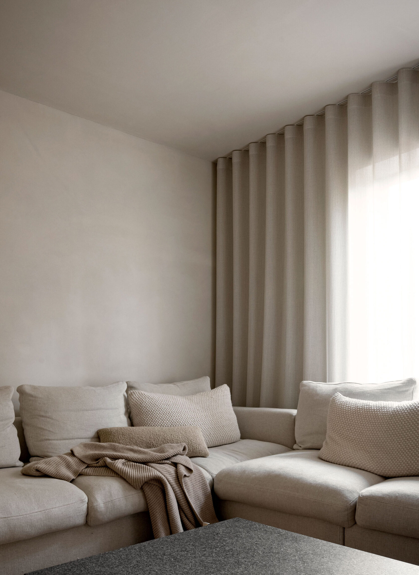 Весь дом был оформлен индивидуально созданным интерьером, превращённым в спокойное пристанище, куда семья может уединиться от переизбытка внешних впечатлений.